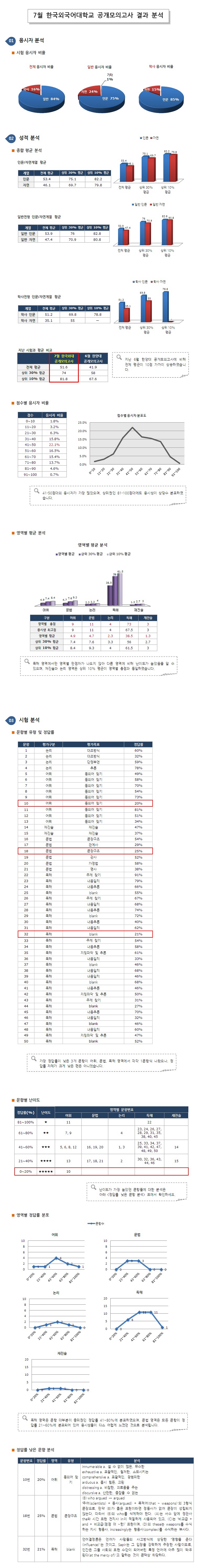 [공지] 2016년 7월 한국외대 공개모의고사 결과 분석