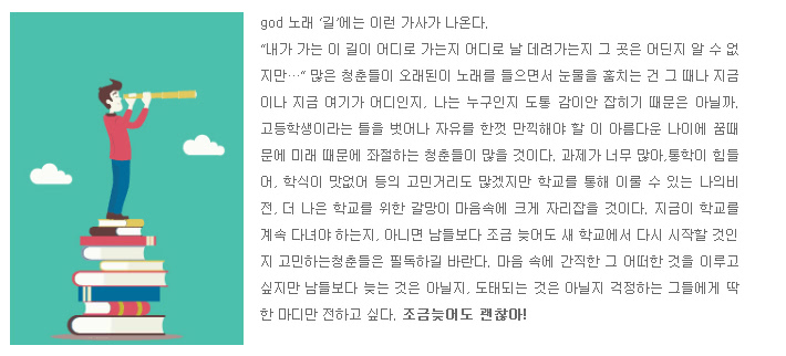 그래서 생각했지. ‘아, 지금이라도 늦지 않았다. 내 미래를 바꿔야겠다.’ 라고.