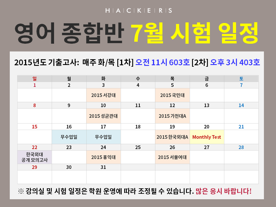 ★두울★ 해커스편입 7-8월 기출고사 일정