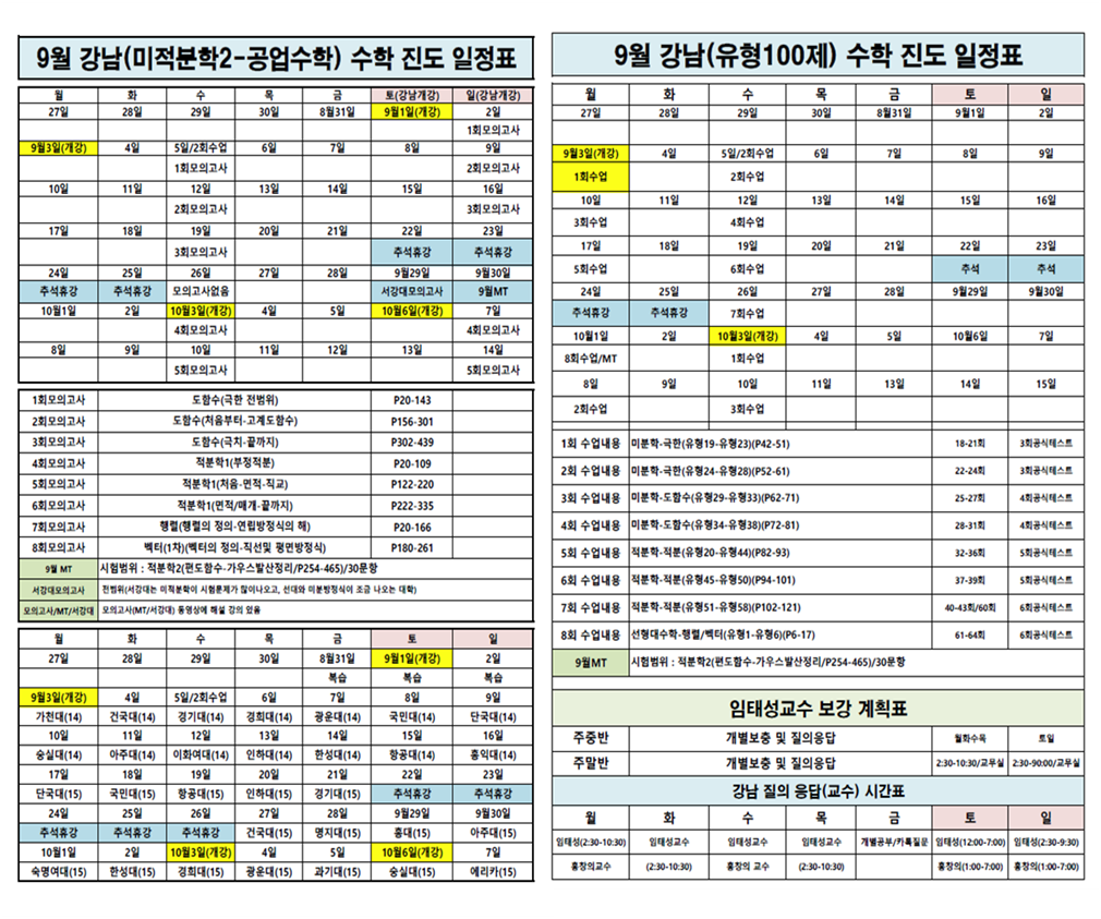 기출문제풀이반 기출고사 일정 | |||||||