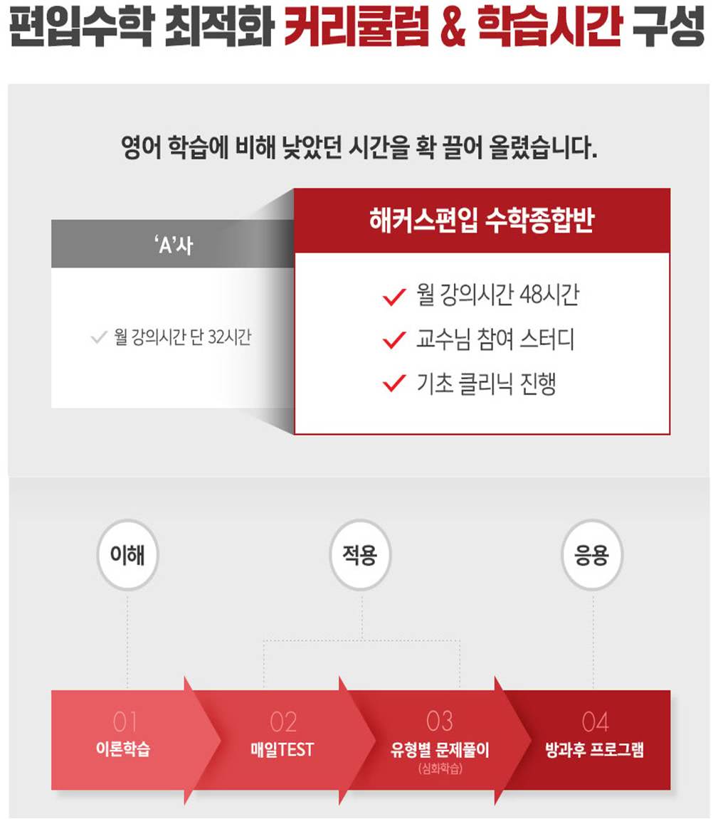 수업시수 | 편입영어 : 최대 15T ㈜ / 편입수학 : 최대 12T ㈜ | ||||||
