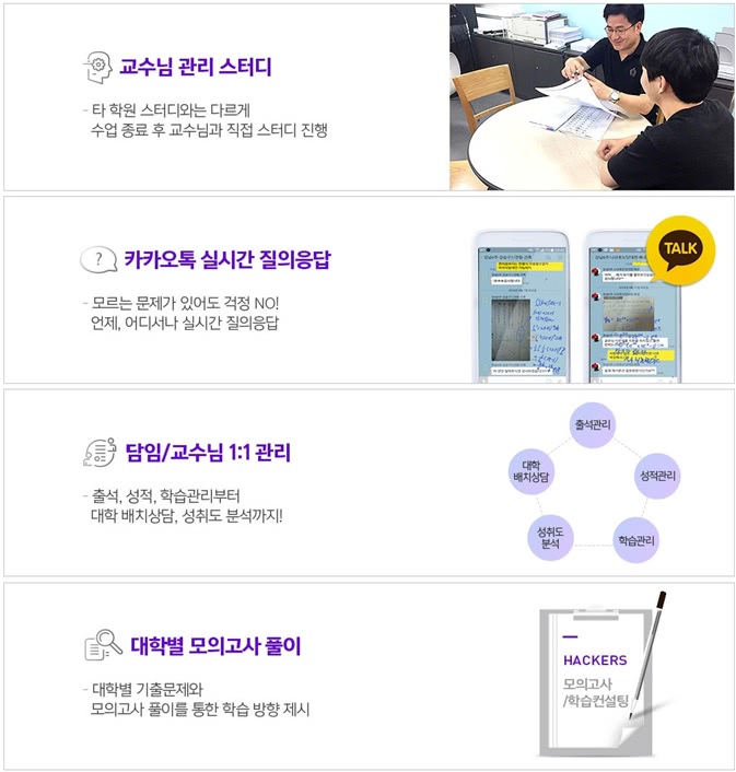 수강생 1인 : 교수님 1인 + 해커스편입 합격생 출신 조교 2명 관리