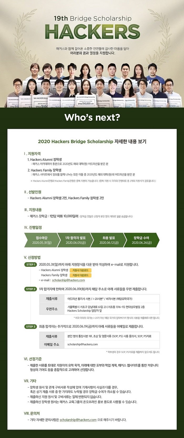 2020장학생 모집★총 4만불 지원!해커스 수강생 누구나 지원가능