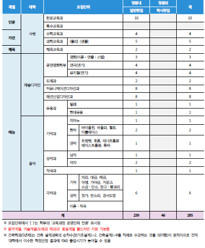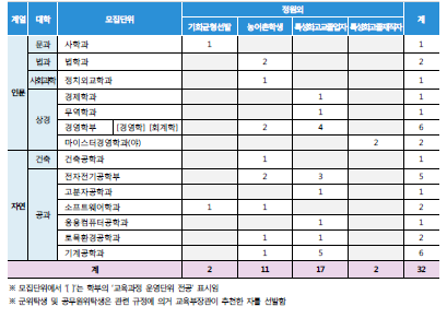 모집단위 및 모집인원
