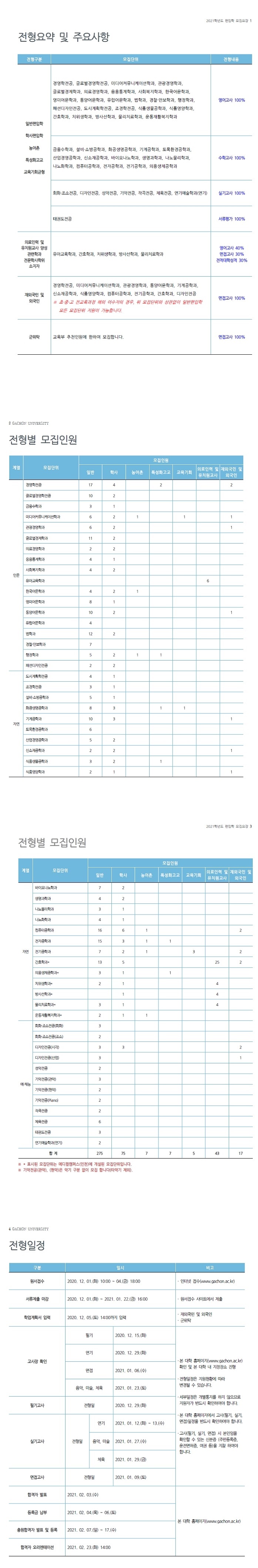 2021학년도 가천대학교 최종 모집 요강입니다.
