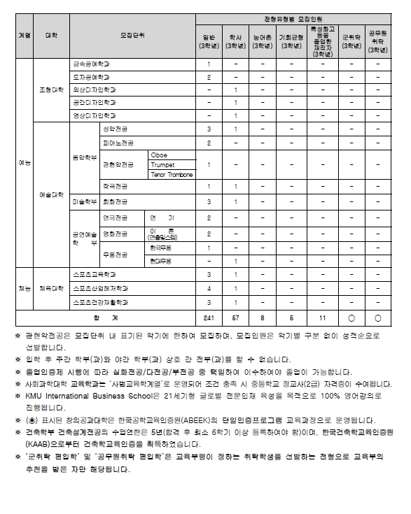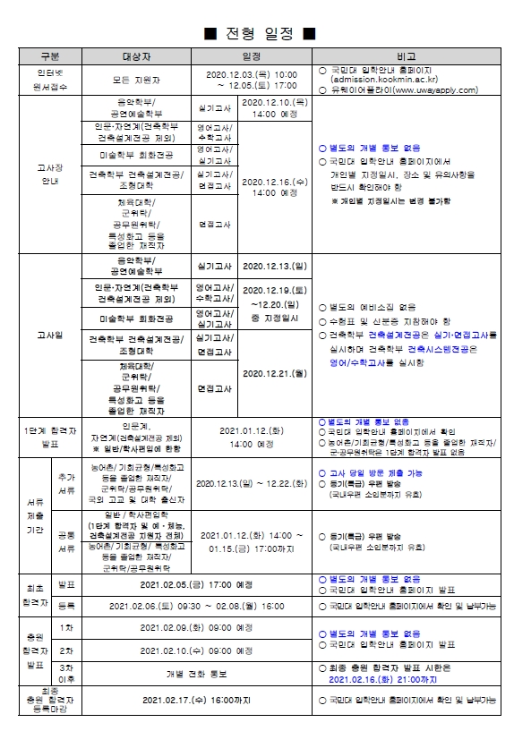 2021학년도 국민대학교 최종 모집 요강입니다.