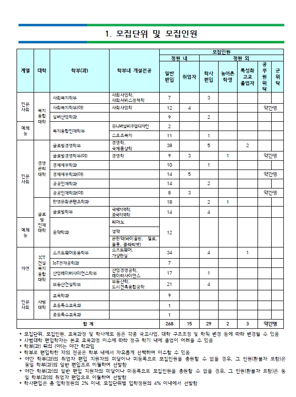 ▼ 모집단위 및 모집인원