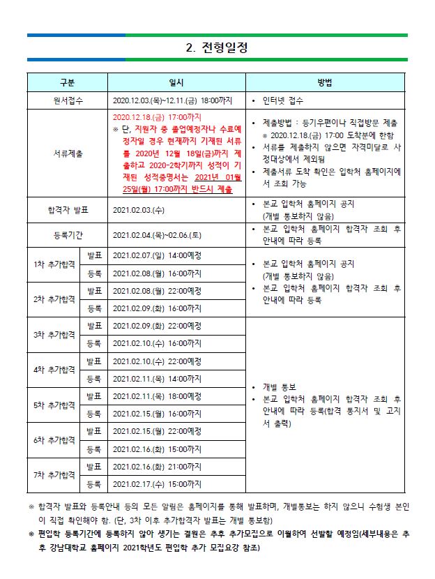 * 입학처 바로가기: 강남대학교 입학처