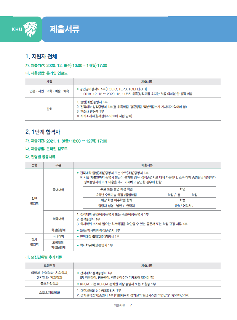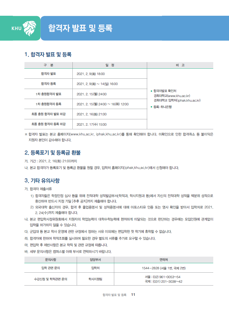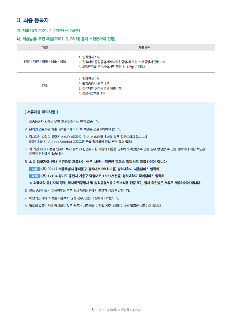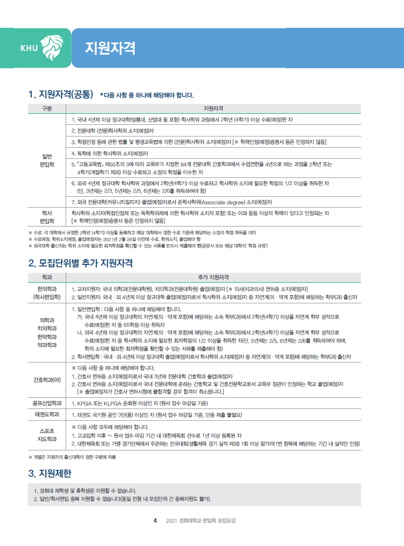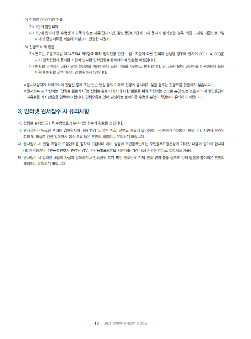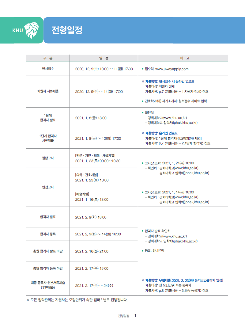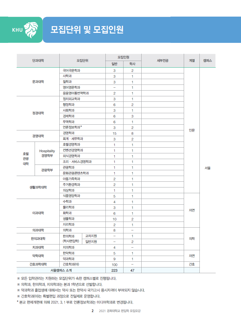 [2021학년도] 경희대학교 최종 모집요강 입니다.