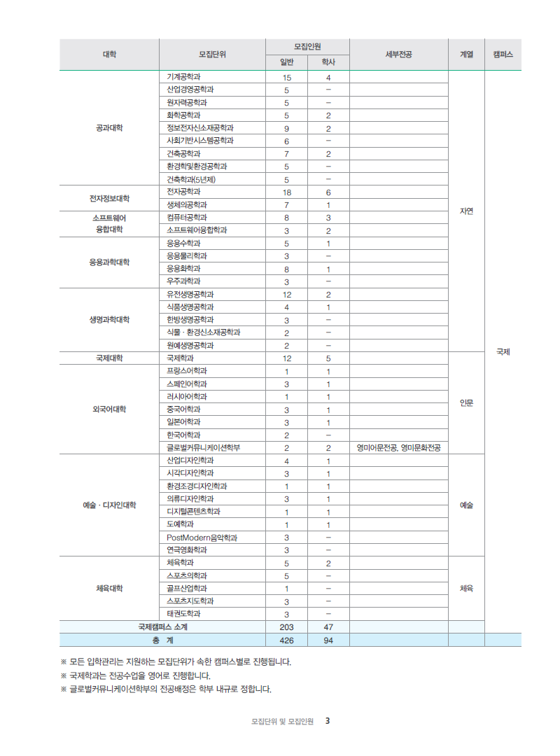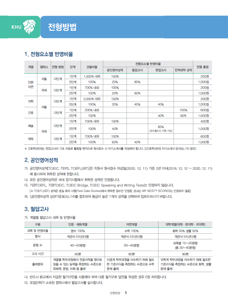 경희대학교 최종 모집요강 입니다.