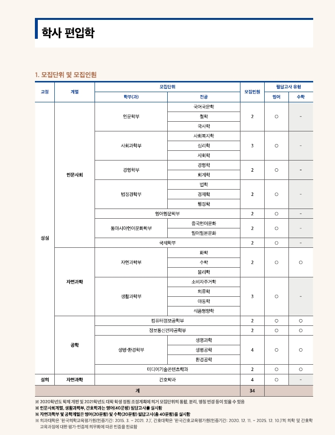 가톨릭대학교 최종 모집요강 입니다.