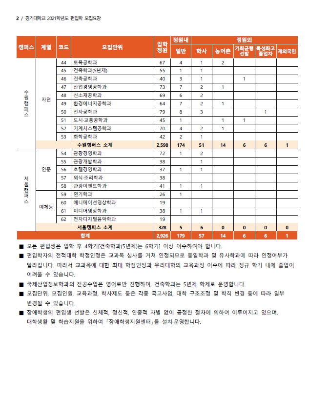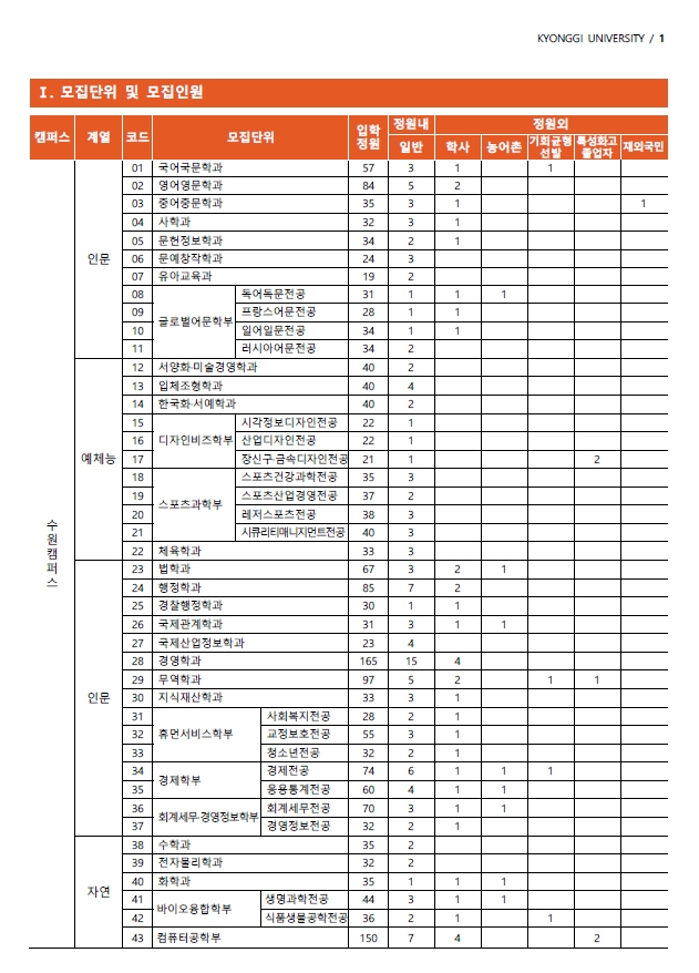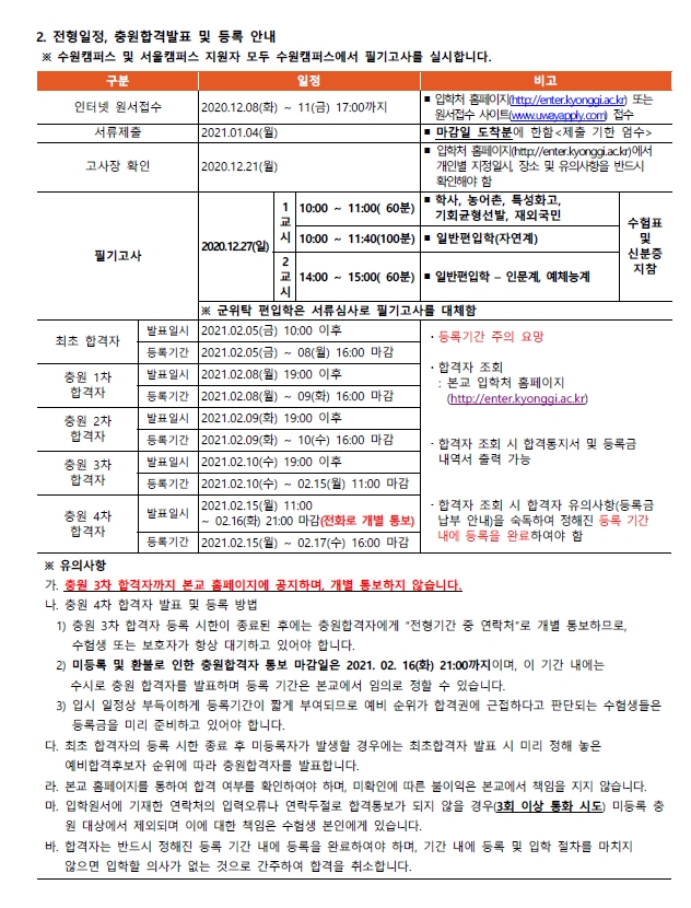 [2021학년도] 경기대학교 최종 모집요강 입니다.