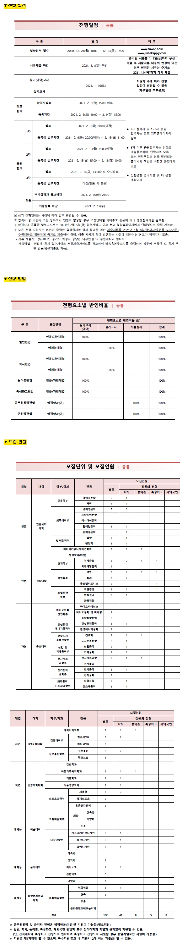 2021학년도 수원대학교 최종 모집 요강입니다.