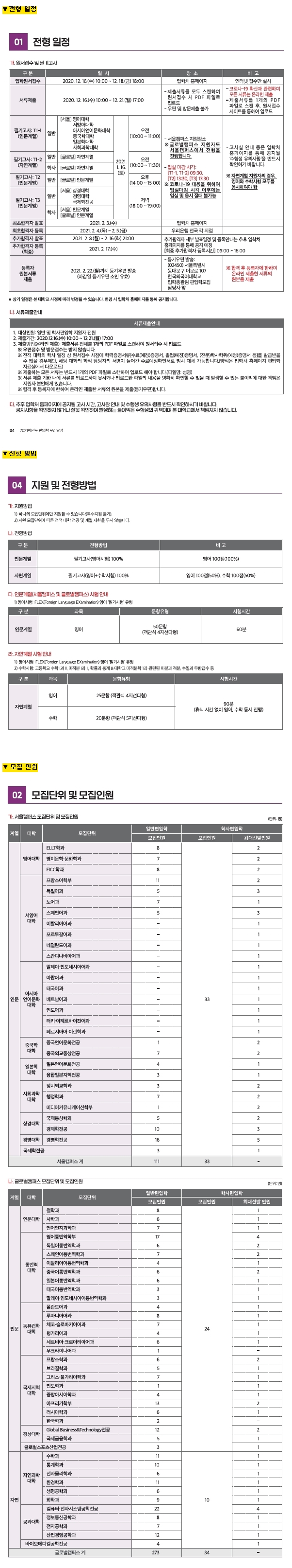 2021학년도 한국외국어대학교 최종 모집 요강입니다.