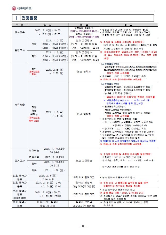 ※ 세종대학교 입학처 : 바로가기