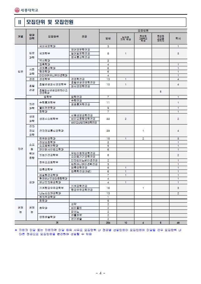 세종대학교 최종 모집요강을 안내 드립니다.