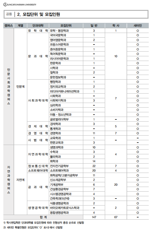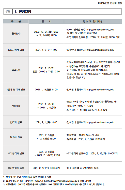 2021학년도 성균관대학교 편입학 최종 모집요강입니다.