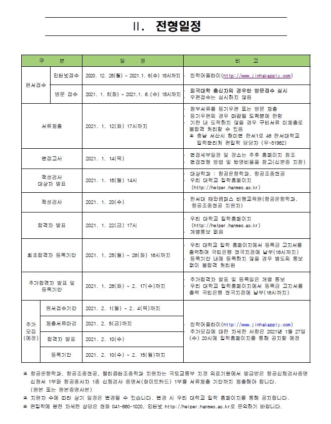 2021학년도 한서대학교 최종 모집 요강입니다.
