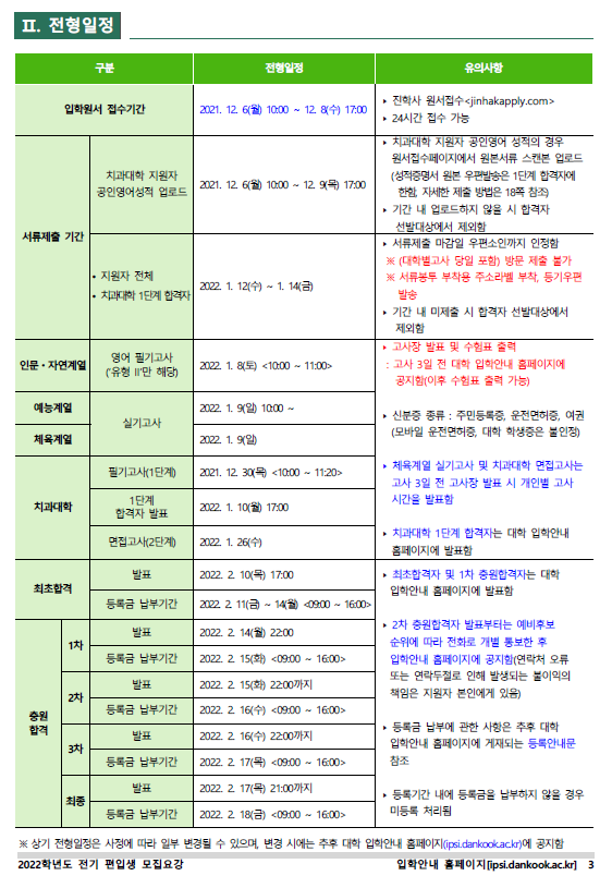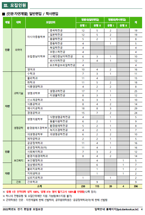 2022학년도 단국대학교(천안) 편입학 최종 모집요강입니다.