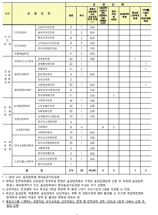 2022학년도 건국대학교(글로컬) 편입학 모집요강입니다.