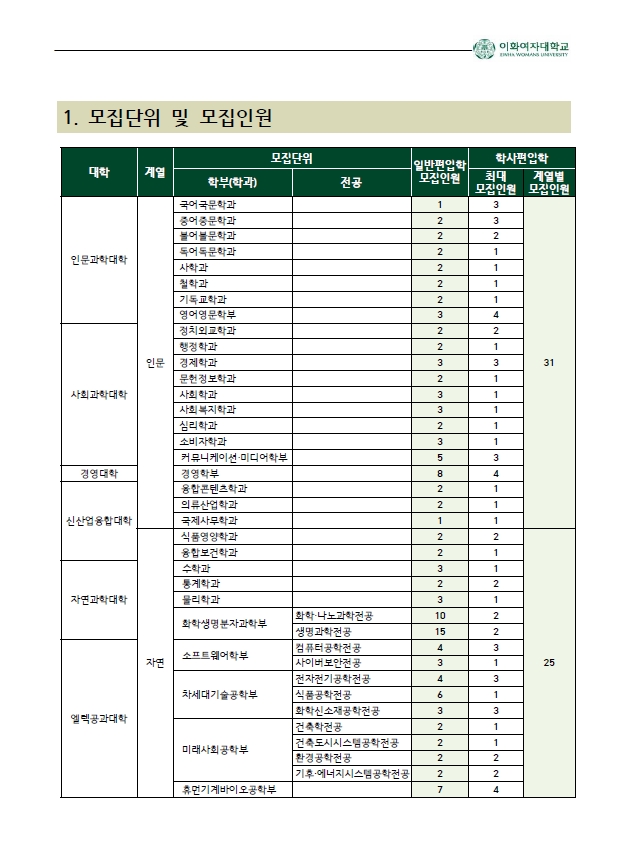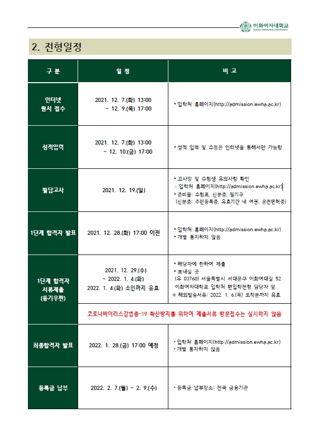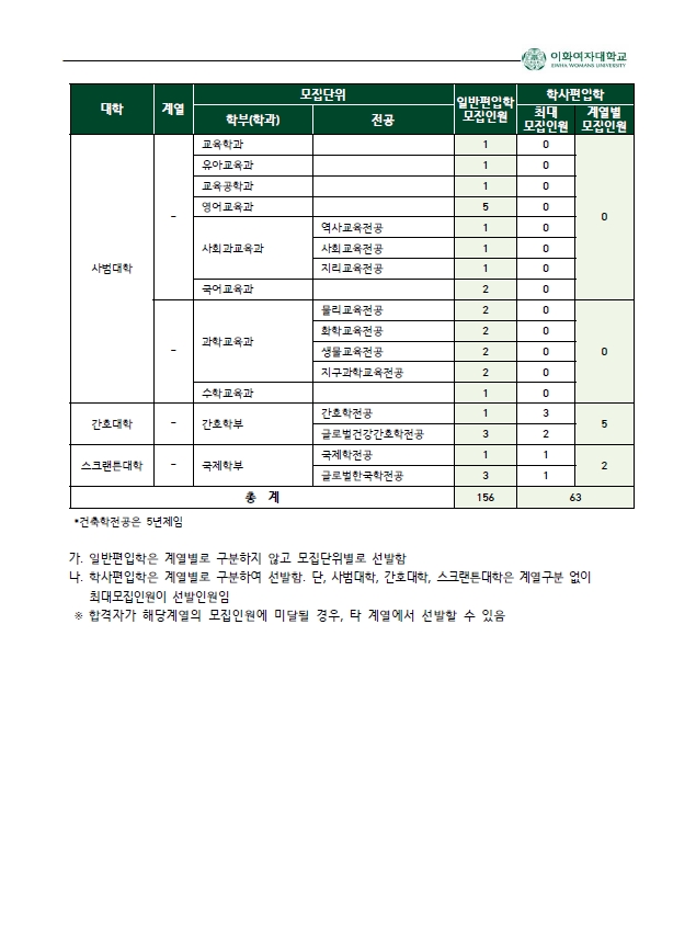 2022학년도 이화여자대학교 편입학 모집요강입니다.