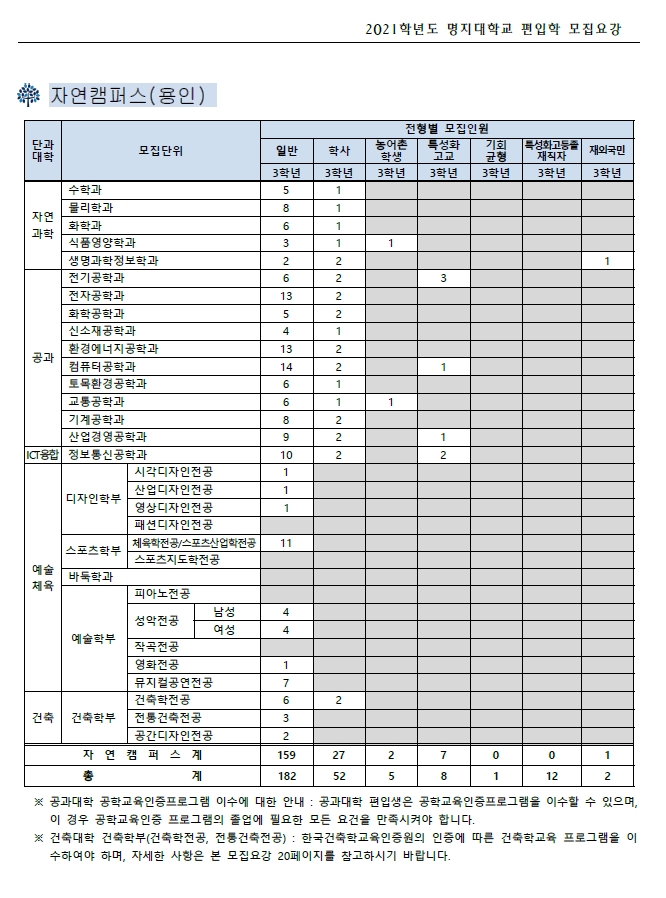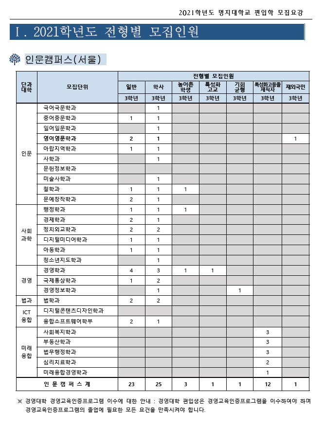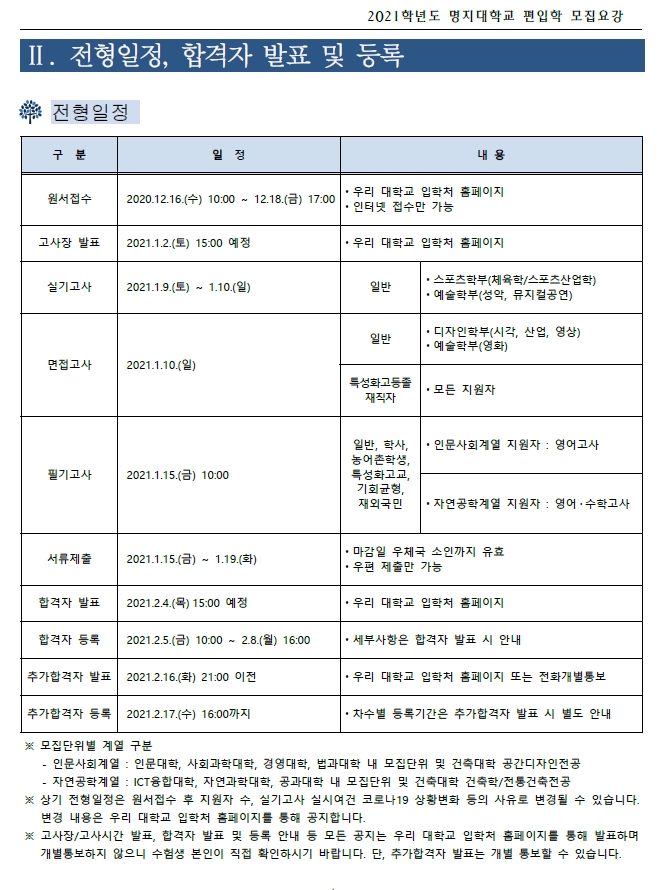 명지대학교 편입학 최종 모집요강 공유드립니다.