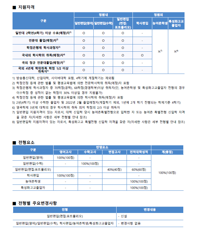 2022학년도 한국산업기술대학교 편입학 모집요강입니다.