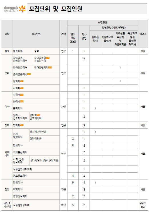 ※ 동국대학교 입학처 : 바로가기