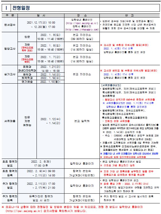 ※ 세종대학교 입학처: 바로가기