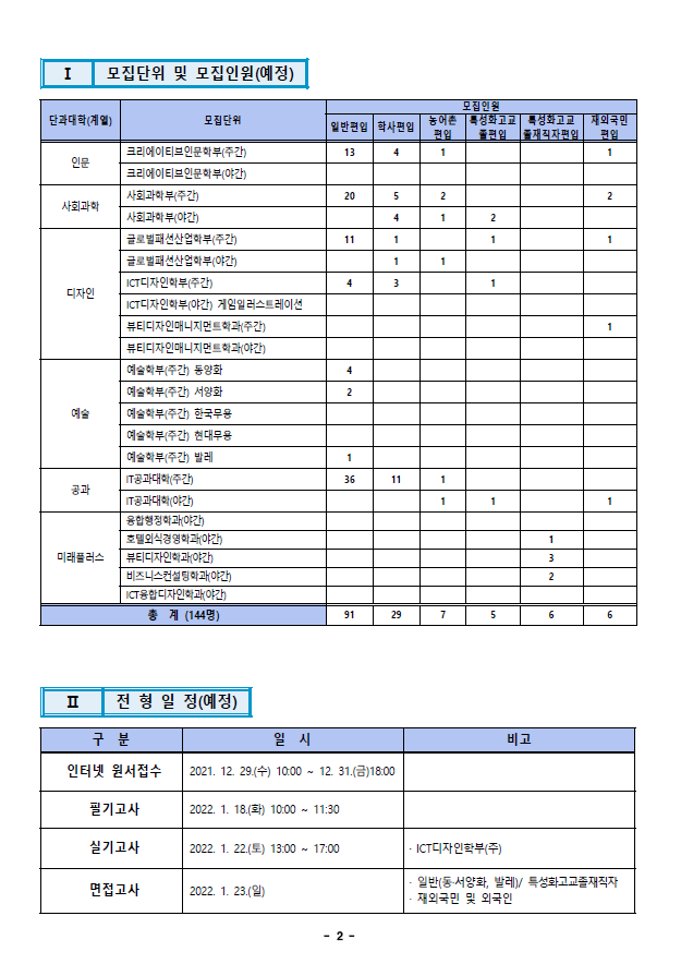 2022학년도 한성대학교 편입학 모집요강입니다.