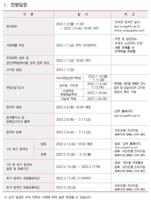 ※ 성신여자대학교 입학처 : 바로가기