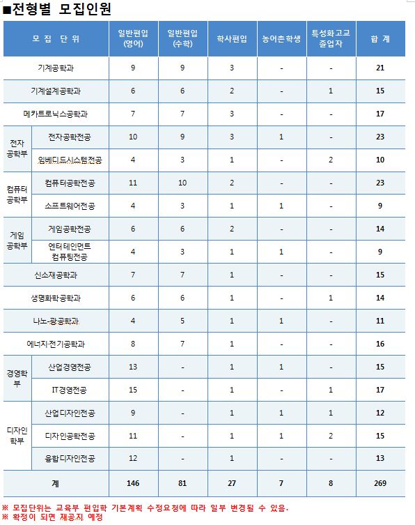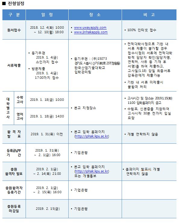 2019학년도 한국산업기술대학교 편입학 기본계획 안내입니다.