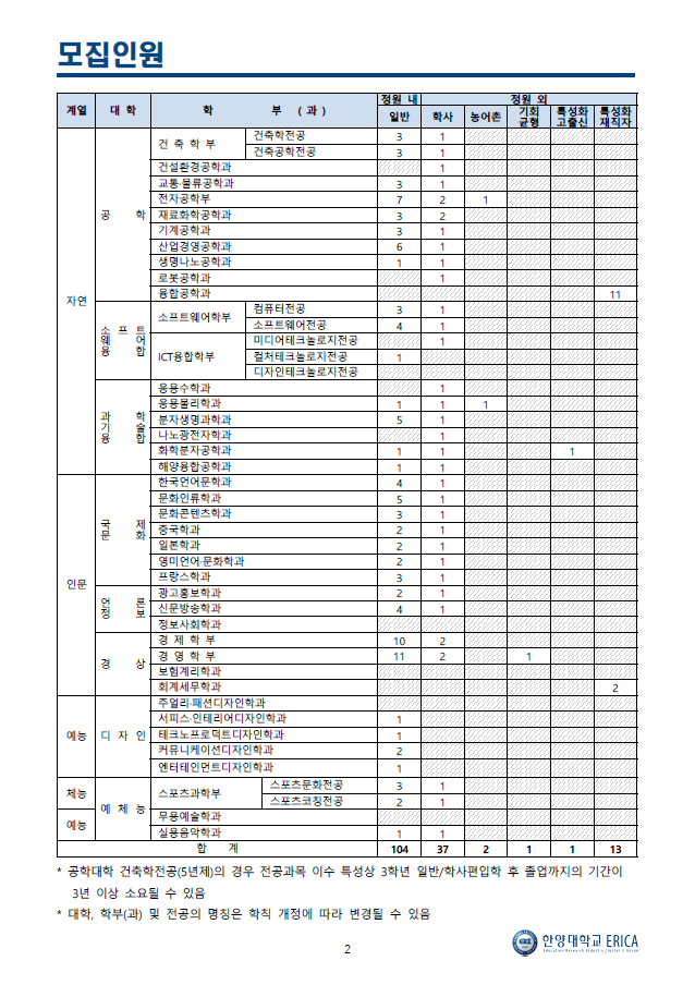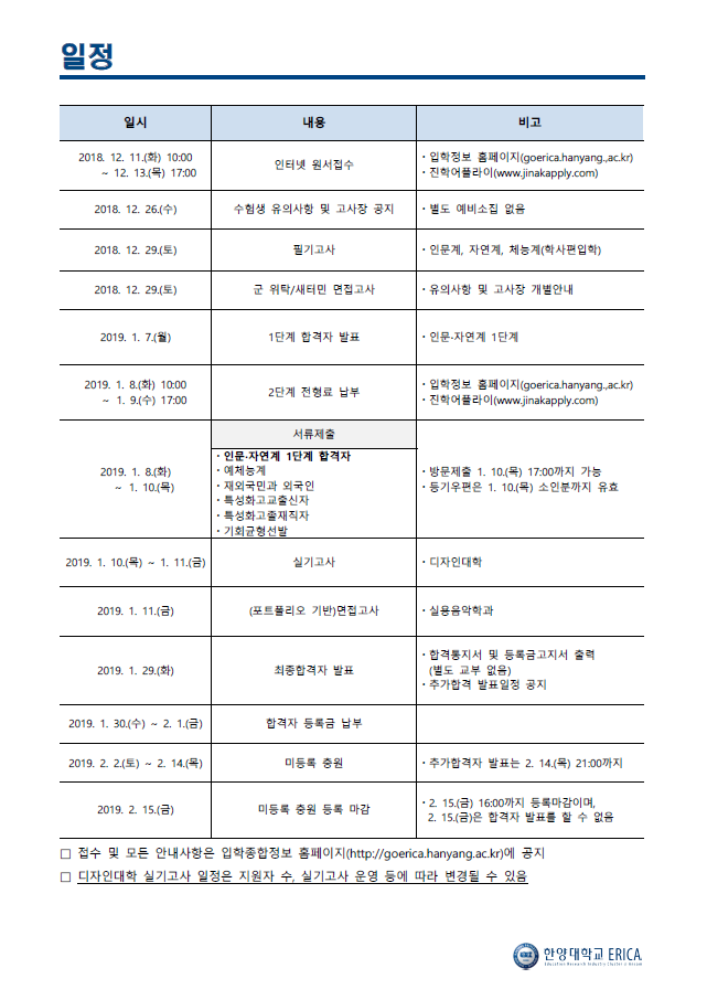 한양대학교 에리카 최종 모집요강 안내입니다.