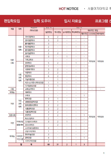 2019학년도 서울여자대학교 최종 모집요강입니다.