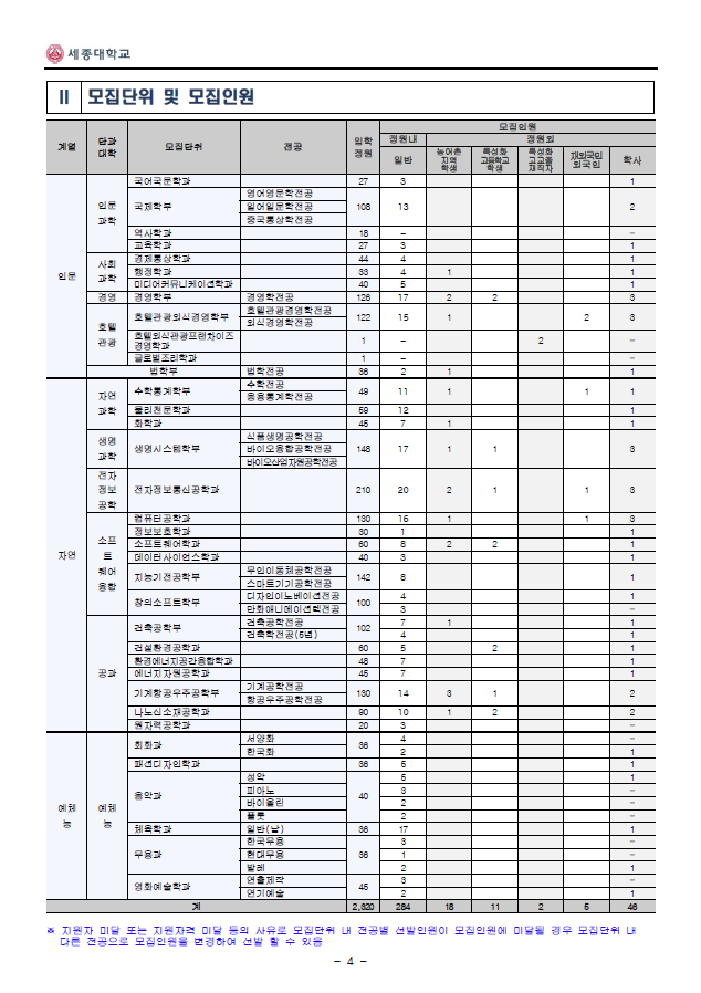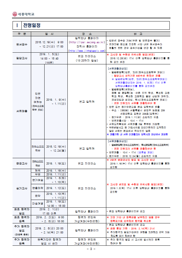 2019학년도 세종대학교 최종 모집요강입니다.
