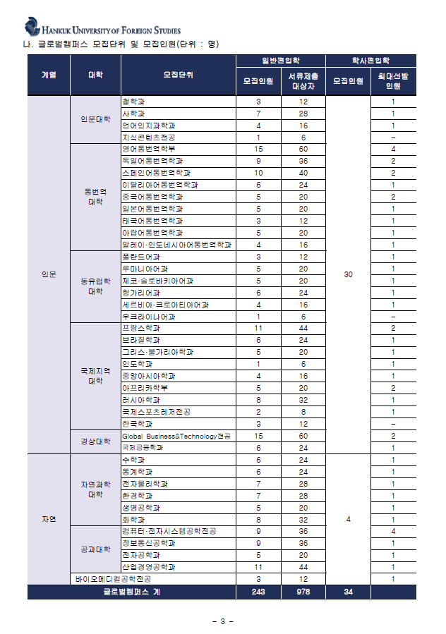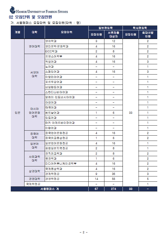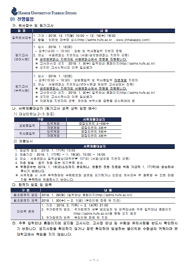 2019학년도 한국외국어대학교 최종 모집요강입니다.