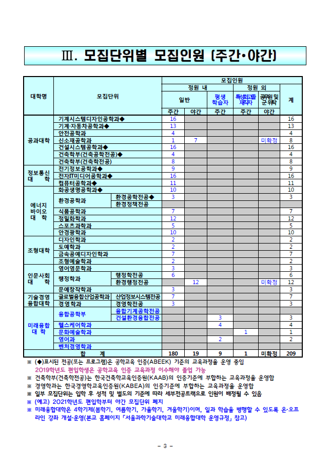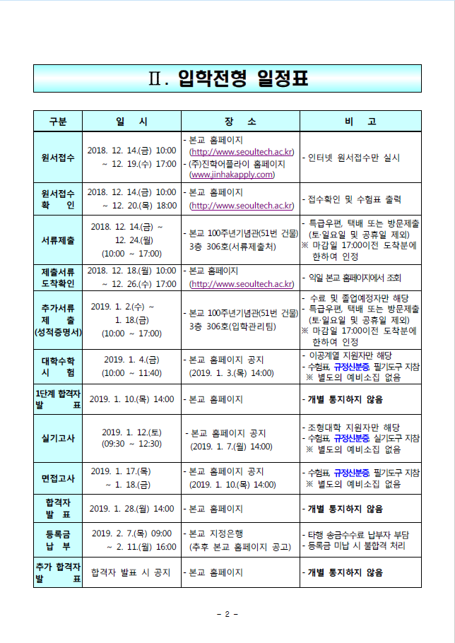 2019학년도 서울과학기술대학교 최종 모집요강입니다.