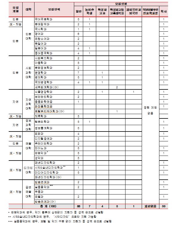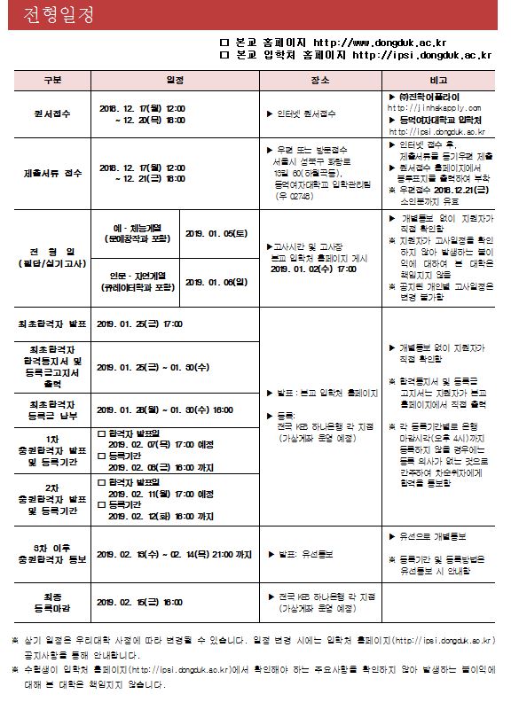 동덕여자대학교 최종 모집요강 안내입니다.