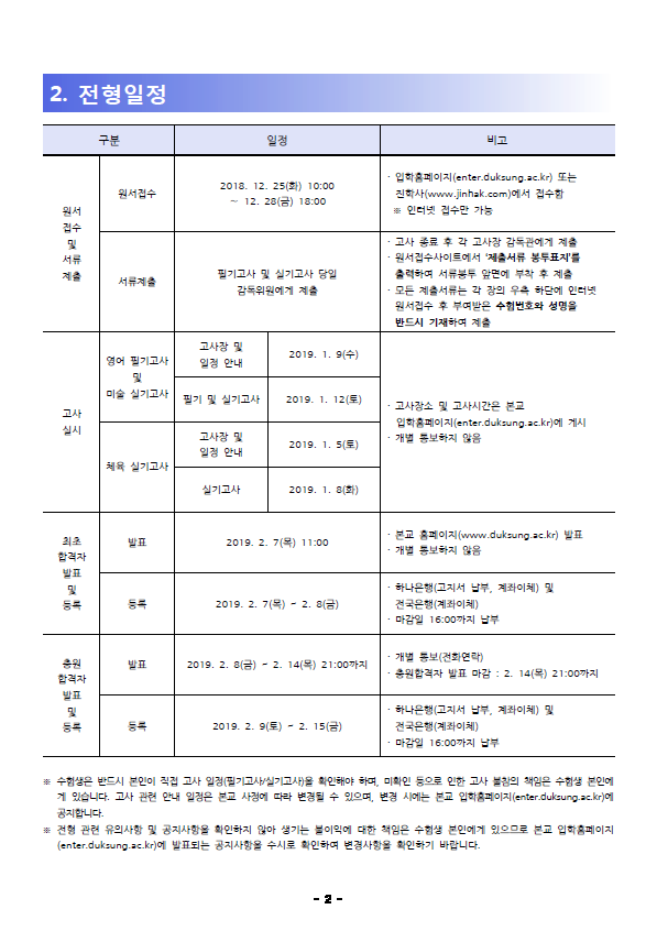 2019학년도 덕성여자대학교 최종 모집요강입니다.