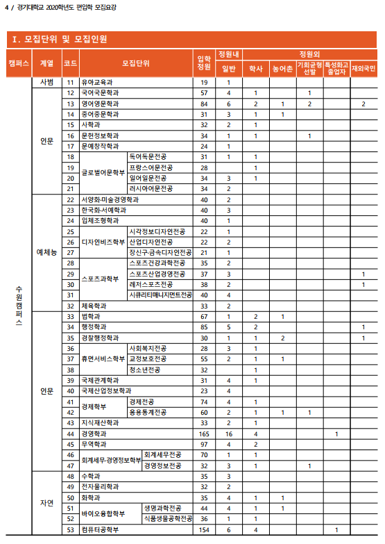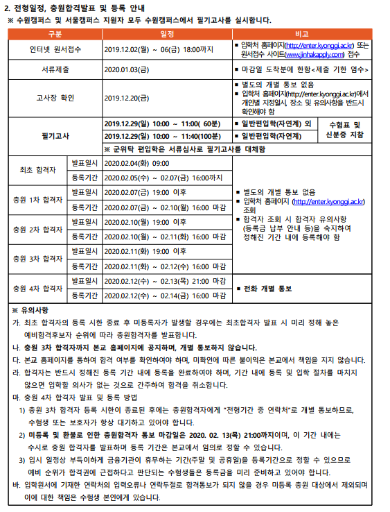 [2020학년도] 경기대학교 편입학 최종 모집요강 안내
