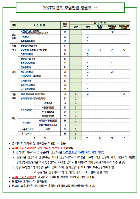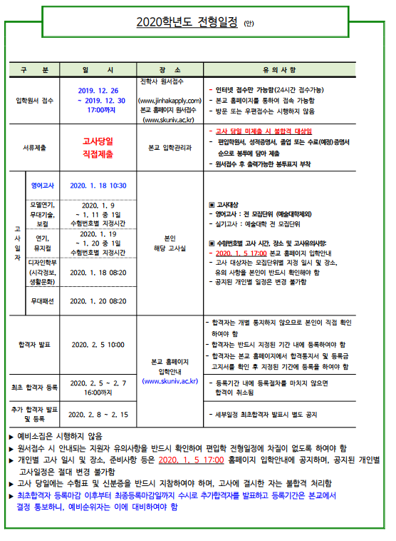 [2020학년도] 서경대학교 2020학년도 편입학전형 기본계획 안내